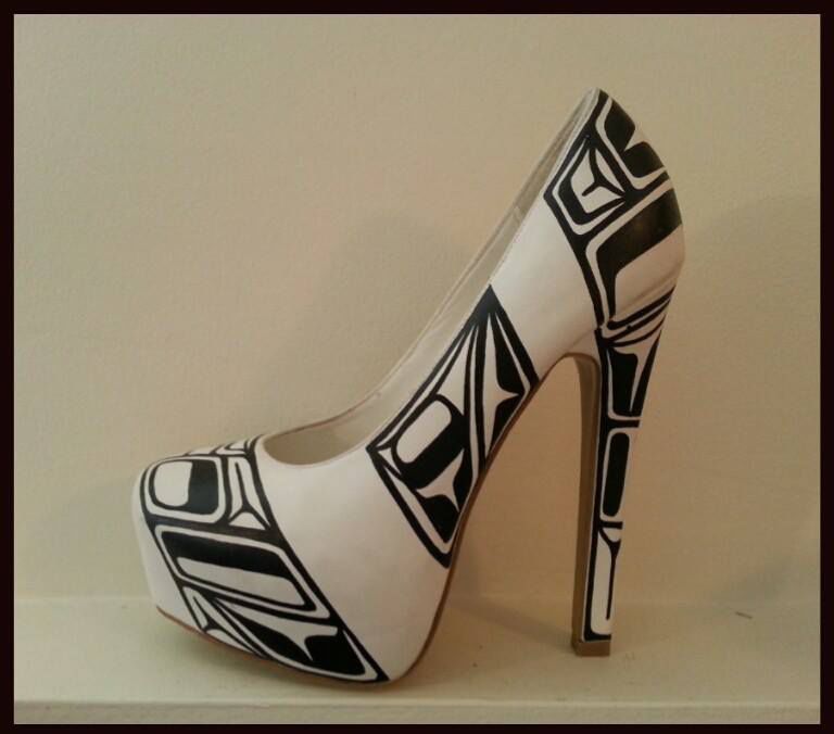 I have been drawing Native art since I was 8 years old and always wanted to be a Native artist. Growing up I always had a passion for Native art but never pursued a career. As a teenager I modeled for fashion shows for First Nations designers and always wanted to see clothing, shoes and accessories that people could wear everyday and not as just formal wear. In 2012 I was unemployed, and took up drawing again. I began drawing on my own shoes and they became popular on Facebook, so I began designing on purses, earrings and wallets.