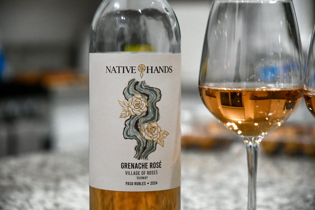 Native Hands Grenache Rosé, Village of Roses (Ushmai), is inspired by an ancestral village once located along the border of Juaneño and Luiseño territories. Known as the “village of wild roses,” Ushmai carries a history rooted in land, memory, and generations of connection dating back to the early 1700s. Photo: 82 Visuals.