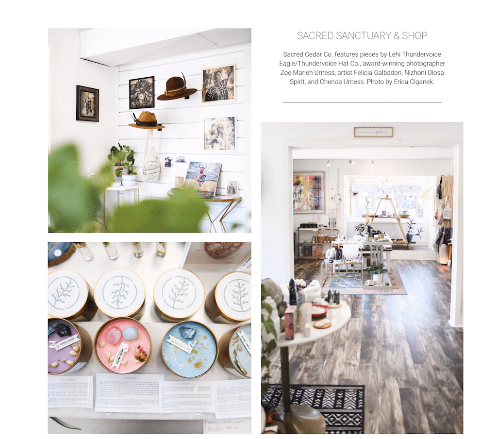 Small Indigenous woman-owned shop Sacred Cedar Co. was inspired by the profound wonder of the natural world and the collective spirit that binds all of us and is on a quest to showcase Indigenous artists year-round in a tribute to the Earth’s beauty and humanity.